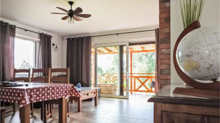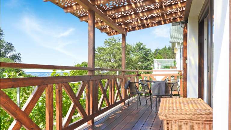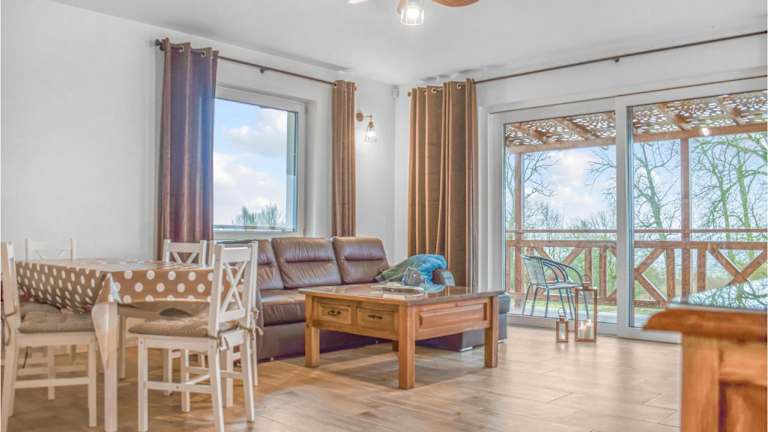 Die Unterkunft befindet sich in Dargobądz, mit Blick auf das Meer. In der Nähe gibt es den Strand Karnocice, der sich 2,8 km entfernt befindet, sowie den Bahnhof Swinemünde, der 23 km entfernt ist. Der Swinoujscie-Leuchtturm ist 24 km von der Unterkunft entfernt und die Miedzyzdroje Walk of Fame liegt 15 km entfernt.