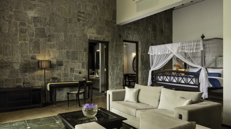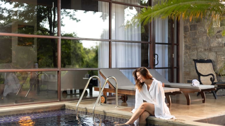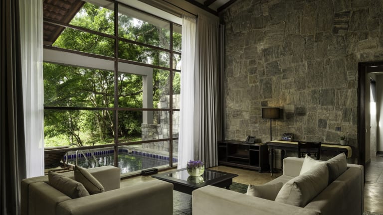 20 Suiten mit privatem Pool (98 m²): Die Ayugiri Suiten bezaubern auf 98 qm mit weitläufigen grünen Ausblicken und ultimativem Luxus. Vom gemütlichen Bett bis zum einladenden Tauchbecken auf der Terrasse oder in der Suite strahlt jedes Detail Eleganz aus. Großzügige Wohnbereiche, luxuriöse Badewannen und eine ruhige private Veranda laden zum Entspannen und Erholen ein. Diese Suiten bieten die perfekte Mischung aus Komfort und Ruhe. 2 Präsidentensuiten mit privatem Pool (235 m²): Die Präsidentensuite bietet auf 235 qm höchsten Komfort und Privatsphäre und verfügt über zwei Schlafzimmer – eines mit Kingsize-/Doppelbett, das andere mit zwei Einzelbetten –, jeweils mit eigenem Wohnbereich, eigenem Bad mit ebenerdiger Dusche und Badewanne. Die Suite bietet außerdem ein stilvolles Esszimmer, einen integrierten Ayurveda-Behandlungsraum mit separatem WC und eine private Terrasse mit eigenem Pool mit Blick auf die grüne Umgebung. Perfekt für Gäste, die Platz, Luxus und Wellness in einem exklusiven Rückzugsort suchen. Für 2, 3 oder 4 Gäste.
