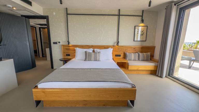 Die Zimmer sind mit Klimaanlage, einem Flachbild-TV mit Satellitenkanälen, einem Wasserkocher, einer Dusche und kostenlosen Pflegeprodukten ausgestattet. Des Weiteren sind alle Zimmer mit einem Kleiderschrank und einem Safe versehen. Einige Zimmer bieten eine Terrasse, während andere einen Meerblick haben. Alle Zimmer verfügen zudem über einen Sitzbereich.