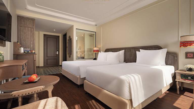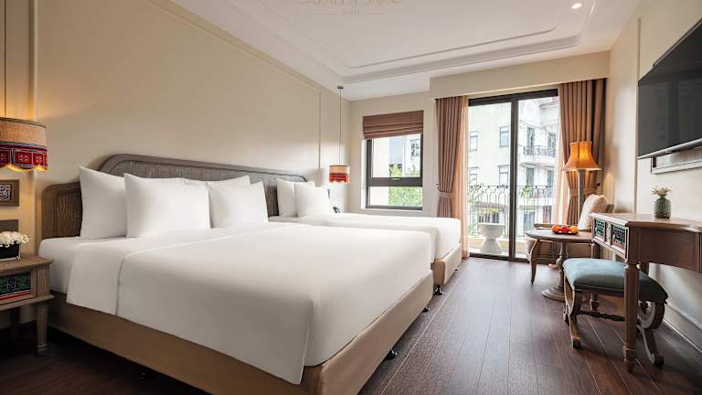 Die Zimmer im Azalea Sapa Hotel sind klimatisiert und bieten eine umfangreiche Ausstattung, darunter einen Schreibtisch, einen Safe, einen Flachbild-TV und ein eigenes Badezimmer mit Dusche. Alle Zimmer sind mit einem Balkon ausgestattet und einige bieten Stadtblick. Ein Kleiderschrank ist ebenfalls vorhanden.