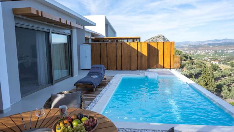 Die Unterkunft befindet sich in Tolo, in der Nähe des Strands, mit einem Abstand von 1,6 km zum Strand Tolo und 2 km zum antiken Strand von Asini. Der nächste Flughafen ist der Internationale Flughafen Kalamata, der 149 km entfernt liegt.