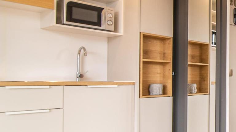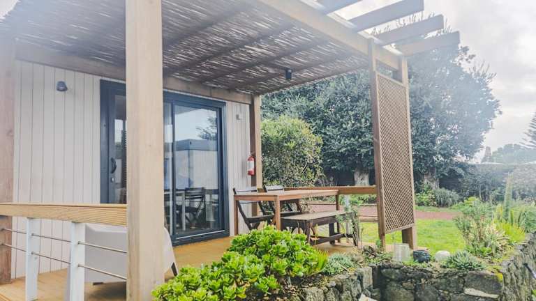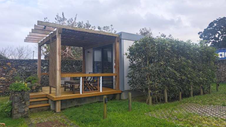Das Ferienhaus im Azor'Oasis verfügt über ein gemütliches Schlafzimmer und ein gut ausgestattetes Badezimmer. Die Küchenzeile bietet alles, was Sie für die Zubereitung Ihrer Mahlzeiten benötigen, darunter ein Kühlschrank, eine Mikrowelle und ein Kochfeld. Genießen Sie den Komfort des Kabel-TV und des kostenfreien WLANs. Die Terrasse bietet einen herrlichen Blick auf den Garten.