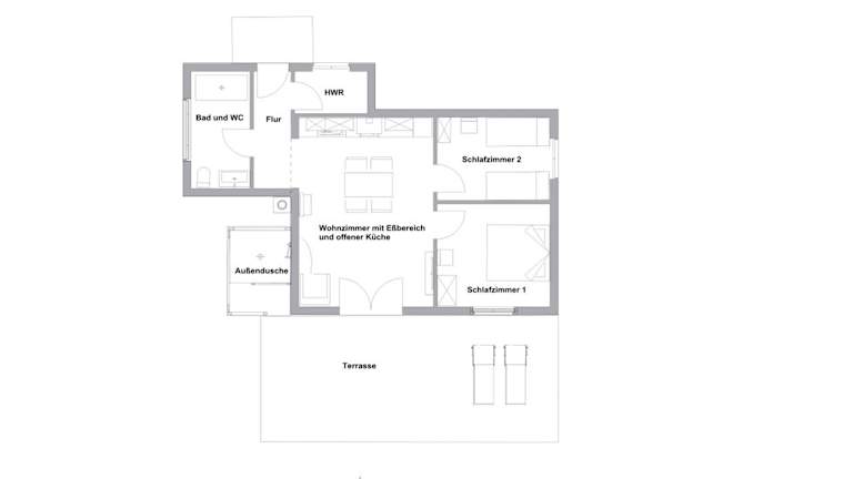 Das klimatisierte Ferienhaus verfügt über 2 Schlafzimmer, die Ihnen einen erholsamen Schlaf bieten. Das Wohnzimmer lädt zum Entspannen ein und die voll ausgestattete Küche ermöglicht es Ihnen, Ihre eigenen Mahlzeiten zuzubereiten. Die beiden Badezimmer sind mit Duschen und einem Haartrockner ausgestattet. Das Haus verfügt auch über einen gemütlichen Sitzbereich und eine Terrasse, auf der Sie die frische Luft und die schöne Umgebung genießen können.