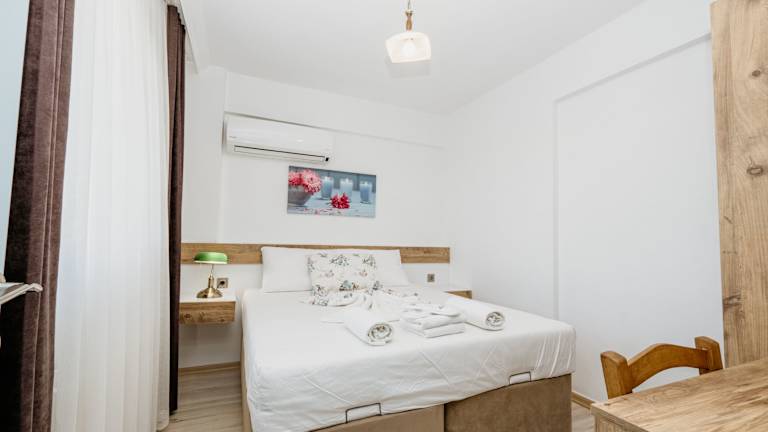 Die klimatisierten Unterkünfte im Azra Apart sind modern und komfortabel eingerichtet und bieten alles, was Sie für einen angenehmen Aufenthalt benötigen. Jede Unterkunft verfügt über einen eigenen Balkon, auf dem Sie den Blick auf die Stadt und die Umgebung genießen können. In den Zimmern finden Sie einen Flachbild-TV, der für Unterhaltung sorgt, sowie ein eigenes Badezimmer mit einer Dusche und kostenlosen Pflegeprodukten. Einige Unterkünfte verfügen auch über eine voll ausgestattete Küche mit einem Kochfeld, so dass Sie Ihre eigenen Mahlzeiten zubereiten können.