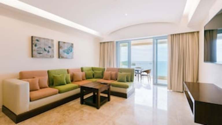 Die Suiten sind modern und farbenfroh gestaltet und verfügen über Klimaanlage, ein separates Bad mit Dusche und Whirlpool, einen Safe, eine Minibar sowie einen Flachbildfernseher mit Kabelanschluss. WLAN ist gegen Gebühr verfügbar.