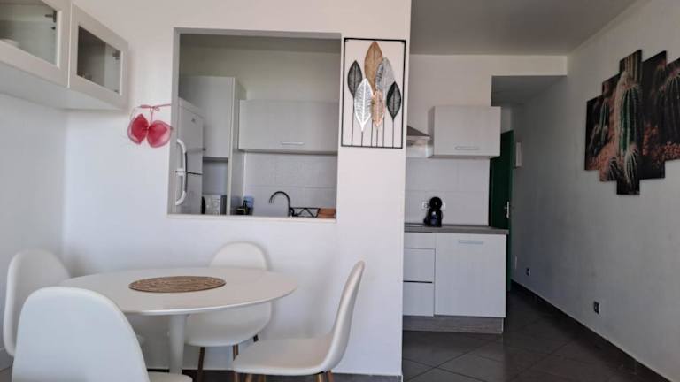 Die Ferienwohnung ist mit einem Schlafzimmer und einem Badezimmer ausgestattet. Zur Ausstattung gehören Bettwäsche, Handtücher, ein Flachbild-TV mit Satellitenkanälen, ein Essbereich, eine voll ausgestattete Küche und eine Terrasse mit Meerblick. WLAN ist kostenfrei verfügbar.