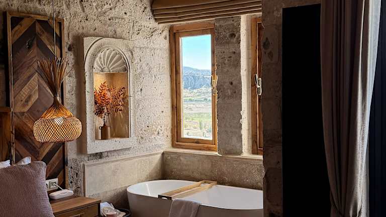 Die Zimmer im Azure Cave Suites - Cappadocia sind im traditionellen Höhlenstil gestaltet und bieten modernen Komfort und einzigartiges Design. Einige Zimmer verfügen über eine extra große Whirlpool-Badewanne oder ein Türkisches Bad, in dem Sie sich während Ihres Aufenthalts verwöhnen lassen können. WLAN ist kostenlos verfügbar, so dass Sie immer mit der Außenwelt in Verbindung bleiben können.