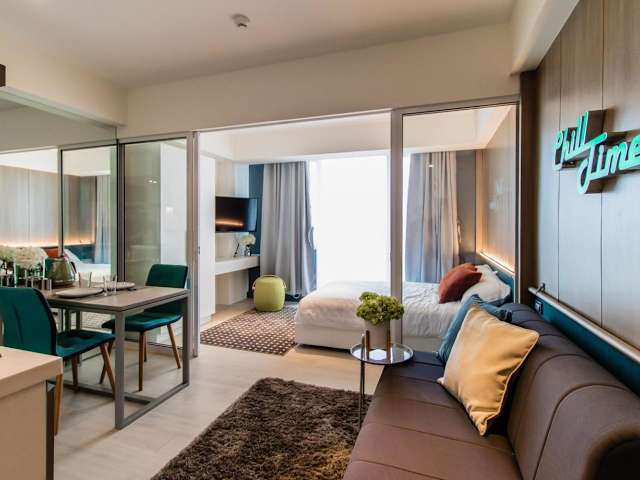 Das Azure Beach Resort Manila by Radlett ist eine ideale Unterkunft in Paranaque, Manila. Hier erwarten Sie ein komfortables und klimatisiertes Apartment mit kostenfreiem WLAN und Zugang zu exklusiven Annehmlichkeiten wie dem Wellenbad, dem künstlichen Strand und dem Kinderspielplatz im Paris Hilton Beach Club. Das Apartment bietet einen Balkon mit herrlichem Stadtblick, einen gemütlichen Sitzbereich mit Schlafsofa, eine voll ausgestattete Küchenzeile und einen kleinen Essbereich. Mit einem 40-Zoll-Flachbild-TV und Online-TV-Programmen ist für Unterhaltung gesorgt. Bettwäsche, Handtücher und Pflegeprodukte stehen Ihnen ebenfalls zur Verfügung. Die Lage des Resorts ist ideal, da die Resorts World nur 7 km entfernt sind und Makati in 9 km erreichbar ist. Der internationale Flughafen Manila ist nur 5 km von der Unterkunft entfernt.