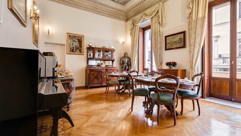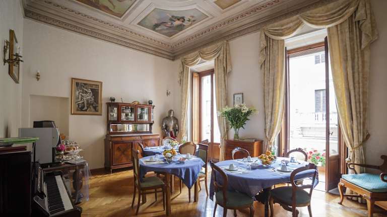 Das Hotel Affreschi Su Roma Luxury B&B ist ein charmantes Jugendstilhotel, das sich nur 200 m von der Piazza Navona entfernt befindet. Mit seiner erstklassigen Lage und dem kostenfreien WLAN bietet es den idealen Ausgangspunkt für Erkundungstouren durch Rom. Die Zimmer sind geschmackvoll eingerichtet und verfügen über Deckenfresken sowie Antikmöbel. Genießen Sie ein köstliches Frühstück im Speisesaal oder auf Ihrem Zimmer und nutzen Sie die gute Anbindung an den öffentlichen Nahverkehr, um die Sehenswürdigkeiten der Stadt zu erkunden.