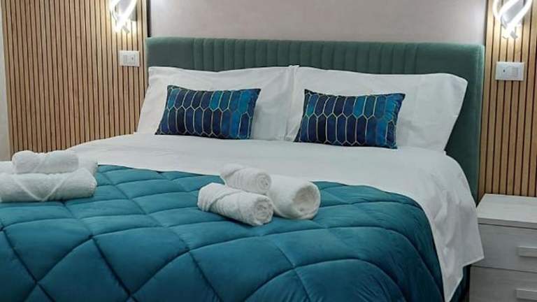 Die Ferienwohnung besteht aus zwei Schlafzimmern und einem Wohnzimmer. Sie bietet eine voll ausgestattete Küche mit Kühlschrank und Kaffeemaschine sowie ein Badezimmer mit Bidet und Dusche. Handtücher und Bettwäsche werden bereitgestellt. Die Unterkunft ist klimatisiert und es sind Familienzimmer verfügbar.