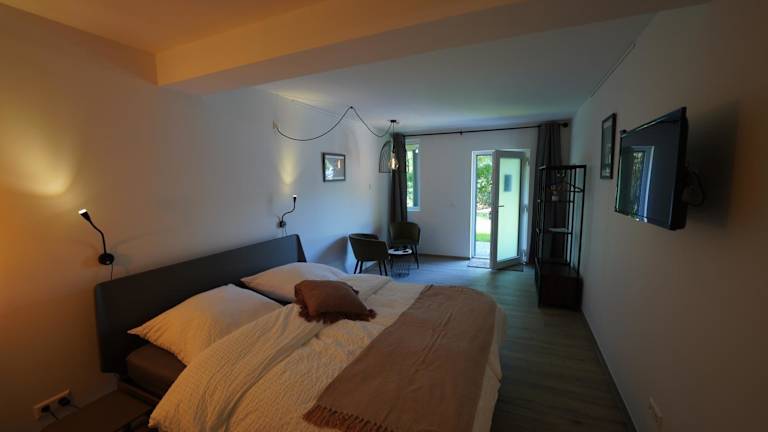Die Zimmer im B&B Alferweiher sind mit einem Satelliten Flachbild-TV ausgestattet. Es werden Handtücher und Bettwäsche angeboten.