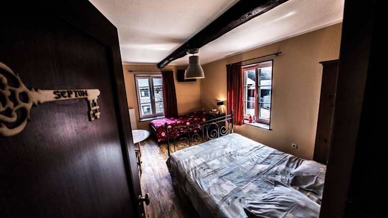 Das B&B Aux 10 Clefs befindet sich im malerischen Dorf Durbuy, direkt am Fluss L'Ourthe. Das Dorf ist für seine Schönheit und seinen Charme bekannt und bietet eine ruhige und entspannte Atmosphäre. Die Umgebung lädt zu Spaziergängen entlang des Flusses oder durch die engen Gassen des Dorfes ein. In der Nähe des B&B finden Sie auch den Durbuy Adventure Park, der eine Vielzahl von Aktivitäten wie Klettern, Kanufahren und Paintball bietet. Der Golfclub Blue Green de Durbuy ist ebenfalls nur eine kurze Autofahrt entfernt und bietet Ihnen die Möglichkeit, eine Runde Golf auf einem malerischen Platz zu spielen.
