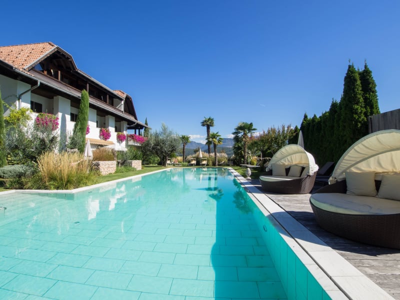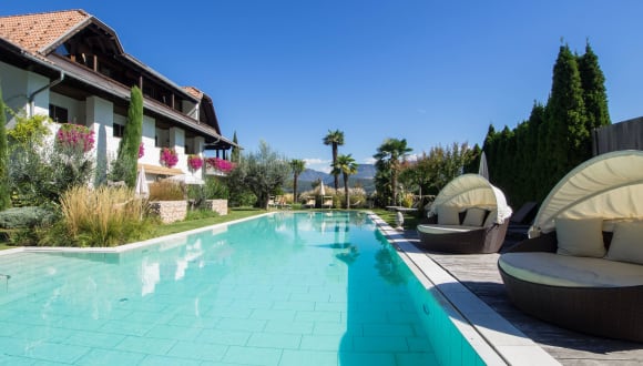 Im gepflegten Garten mit mediterranem Flair, umgeben von Reben die Sonne genießen und sich im Pool erfrischen. Wellness durch die Natur... Unser neues Schwimmbad, welches mit der Saison 2011 in Betrieb genommen wurde, ist nicht nur groß (20 mal 5,5 Meter) und somit ideal um Längen zu schwimmen, sondern hat auch noch ein Whirlpool. Ebenso die gesamte Gartenanlage rings ums Schwimmbad wurde heuer neu gestaltet und in eine wahre Ruheoase verwandelt. Erholung und Badespass pur... Unsere NEUE Saunalandschaft inklusive Ruheraum lädt ein zum Verweilen und Relaxen. Unser Fitnessraum sowie unsere Infrarotsauna stehen Ihnen ebenso den ganzen Tag über kostenlos zur Verfügung. Weiters können auf Anfrage Massagen mit unserm Masseur vereinbart werden. Golfen und ausgedehnte Mountenbiketouren mit oder ohne Begleitung, für Alt und Jung. Leichtes Wandern oder trendiges Walking auf über 300 km gekennzeichneten Wegen Golfen auf einem unserer nahe gelegenen wunderschönen Golfplätzen: St. Petersberg Lana, Mendel usw. Die Region um den Kalterer See ist ein idealer Ausgangspunkt für gemütliche Radwanderungen und Touren für ambitionierte Biker. Abwechslungsreiche Strecken zu wunderschönen Aussichtsplätzen, gemütlichen Einkehrmöglichkeiten und erlebnisreichen Stationen lassen jedes Bikerherz höher schlagen.
