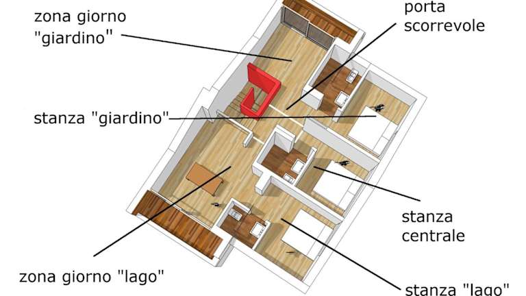 Die Apartments im B&B Casa sul Lago - Appartamenti sind gemütlich eingerichtet und verfügen über Holzbalkendecken und Parkettböden. Jedes Apartment bietet Ihnen einen eigenen Balkon, von dem aus Sie den Blick auf den See und die Berge genießen können. Die Badezimmer sind mit einer Dusche ausgestattet.