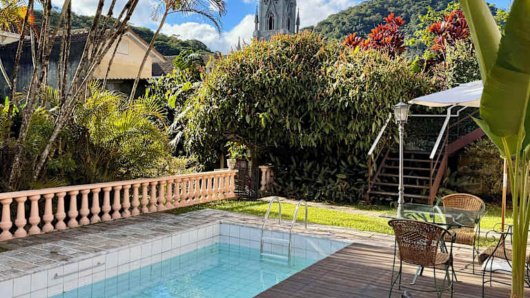 Das Hotel Casablanca Koeler befindet sich direkt gegenüber der beeindruckenden Kathedrale São Pedro de Alcântara in Petrópolis. Diese zentrale Lage ermöglicht es den Gästen, die Sehenswürdigkeiten der Stadt bequem zu Fuß zu erkunden. Das Museu Imperial, ein historisches Museum, liegt nur 300 m entfernt und das Museum Casa de Santos Dumont, das dem berühmten brasilianischen Luftfahrtpionier gewidmet ist, erreichen Sie nach nur 500 m. Die Umgebung des Hotels bietet eine Vielzahl von Geschäften, Restaurants und Cafés, in denen Sie die lokale Küche und Kultur genießen können.