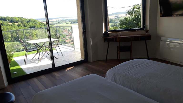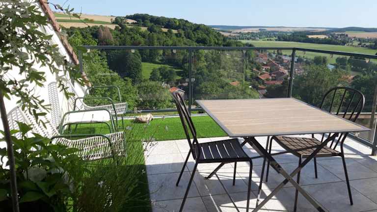 Das Bed & Breakfast Chez FOUCHS liegt in Dun-sur-Meuse in der malerischen mittelalterlichen Festung des Dorfes. Von hier aus haben Sie einen wunderschönen Blick auf den Fluss, den Garten oder die Stadt. In der Umgebung gibt es viele interessante Orte zu entdecken, wie zum Beispiel Verdun, das in nur 30 Fahrminuten erreichbar ist. Auch die Städte Sedan und Bouillon sind einen Besuch wert und liegen jeweils ca. 39 km bzw. 46 km entfernt. Der nächste Flughafen, Metz-Nancy-Lothringen, ist etwa 90 km entfernt. Die belgische Grenze erreichen Sie in nur 25 Fahrminuten.