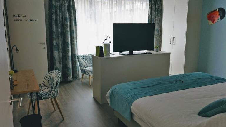 Die Zimmer im B & B De Veurnse Slaper sind komfortabel und bieten Annehmlichkeiten wie einen Flachbild-TV und ein eigenes Badezimmer mit kostenfreien Pflegeprodukten, einem Haartrockner und einer Dusche. Ein Kühlschrank, eine Minibar, eine Kaffeemaschine und ein Wasserkocher stehen ebenfalls zur Verfügung.