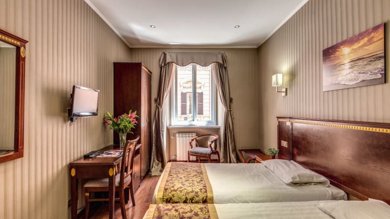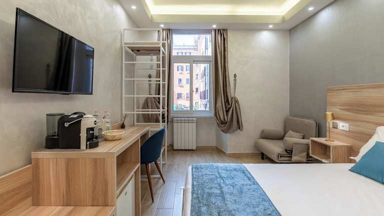 Die Zimmer im B&B Drago D'Oro sind klassisch eingerichtet und bieten einen komfortablen Rückzugsort nach einem langen Tag voller Erkundungen. Jedes Zimmer verfügt über kostenfreies WLAN, eine Minibar, einen Safe und Sat-TV. Im eigenen Bad finden Sie einen Haartrockner, Pflegeprodukte und Hausschuhe. Von den Zimmern aus haben Sie einen herrlichen Blick auf die Stadt, der Ihnen ein Gefühl von Rom vermittelt.