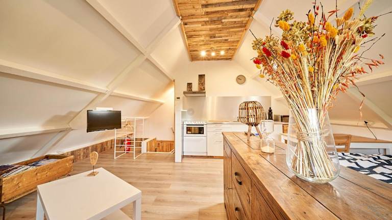 Das B B Huize Hooijer liegt in Beekbergen und bietet eine günstige Lage, nur 6,7 km von Apenheul und 8 km von Paleis 't Loo entfernt. Die Umgebung ist perfekt zum Radfahren und bietet eine Vielzahl von schönen Routen, die Sie erkunden können. In der Nähe befindet sich auch der Nationalpark Veluwezoom, der mit seiner beeindruckenden Natur und seinen Wanderwegen ein beliebtes Ausflugsziel ist. Der Burgers' Zoo ist ebenfalls nicht weit entfernt und bietet eine unterhaltsame und lehrreiche Erfahrung für die ganze Familie. Der Flughafen Amsterdam Schiphol ist etwa 96 km entfernt und gut erreichbar.