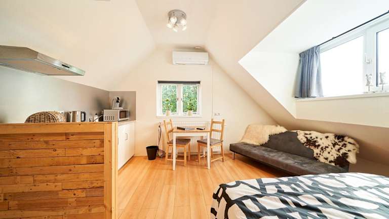 Die Zimmer im B B Huize Hooijer sind komfortabel und gemütlich eingerichtet und bieten alles, was Sie für einen angenehmen Aufenthalt benötigen. Jede Wohneinheit verfügt über eine voll ausgestattete Küche mit einem Esstisch, in der Sie Ihre eigenen Mahlzeiten zubereiten können. Ein Flachbild-Kabel-TV sorgt für Unterhaltung und das private Badezimmer ist mit einer Dusche, kostenfreien Pflegeprodukten und einem Haartrockner ausgestattet. Zusätzliche Annehmlichkeiten wie ein Kühlschrank, ein Geschirrspüler, ein Backofen, eine Kaffeemaschine und ein Wasserkocher sind ebenfalls vorhanden, um Ihren Aufenthalt so angenehm wie möglich zu gestalten.