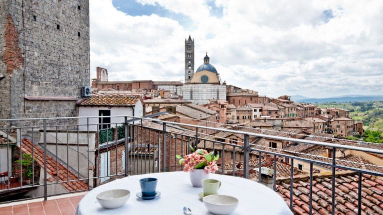 La nostra struttura è di recentissima ristrutturazione (i lavori sono finiti nel 2008), si trova nel centro storico di Siena, a due passi da Piazza del Campo, con vista panoramica sulla Torre del Mangia. Le 5 camere, silenziosissime e spaziose, tutte dotate di arredamento nuovo, sono ubicate in due appartamenti adiacenti, situati ognuno al quinto e sesto piano di un antico palazzo nel cuore della città. Ogni appartamento è completo di cucina e zona giorno, e di tutto l’occorrente per abitarli (tv lcd in ogni camera, biancheria da letto e da bagno, stoviglie, ecc.). Quindi, se volete, potete prepararvi i pasti nel modo che più vi piacerà! Nel prezzo è compresa la pulizia finale e un cambio settimanale di biancheria.