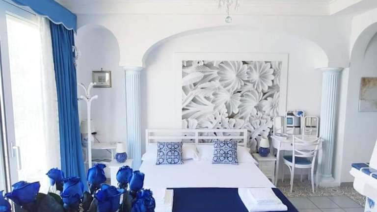 Die Zimmer im Il Bacio di Capri sind komfortabel und klimatisiert. Jedes Zimmer verfügt über einen Flachbild-TV und ein eigenes Bad mit Badewanne oder Dusche, Bidet, Bademänteln und einem Haartrockner. Bettwäsche und Handtücher werden gestellt und einige Zimmer bieten einen Balkon mit Meerblick.