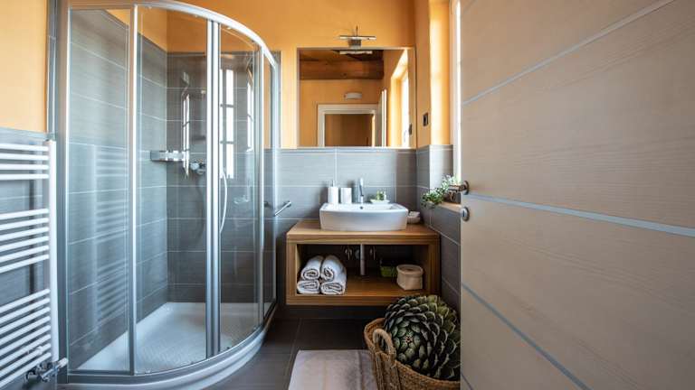 In allen Wohneinheiten der Klinec Plešivo Art Rooms ist ein eigenes Badezimmer mit Dusche vorhanden. Kostenlos Pflegeprodukte und ein Haartrockner sind ebenfalls verfügbar.