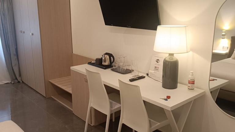 Im B&B La Rosa Felice erwarten Sie komfortable Zimmer mit eigenem Bad und Annehmlichkeiten wie Klimaanlage, Flachbild-TV und Kühlschrank. Die Zimmer sind gemütlich eingerichtet und bieten alles, was Sie für einen angenehmen Aufenthalt benötigen.
