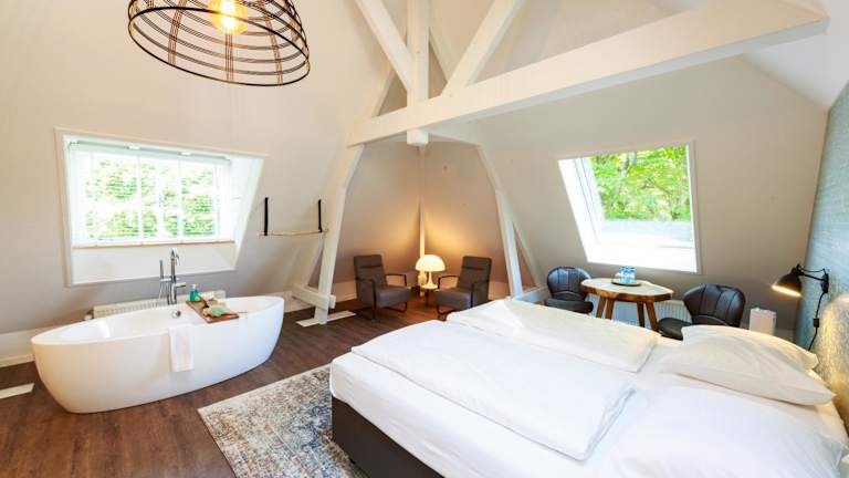 Das B&B Landgoed De Grote Beek verfügt über 24 renovierte Zimmer, die mit einem TV ausgestattet sind. Gemeinschaftsduschen und -WCs stehen zur Verfügung, während die luxuriösen Zimmer über brandneue eigene Bäder verfügen. Das Bed & Breakfast bietet auch ein geräumiges Wohnzimmer und eine Gemeinschaftsküche. WLAN ist in allen Bereichen der Unterkunft kostenlos verfügbar.