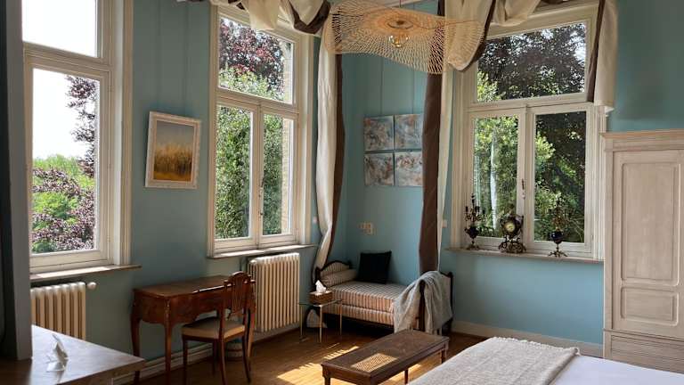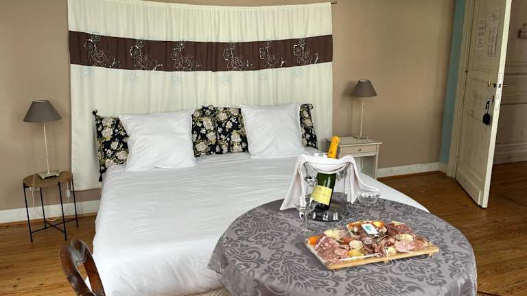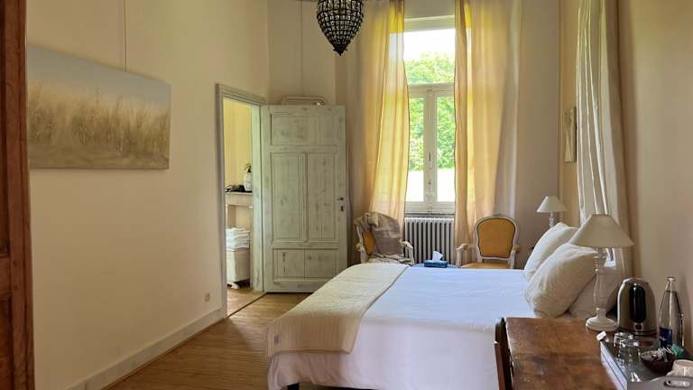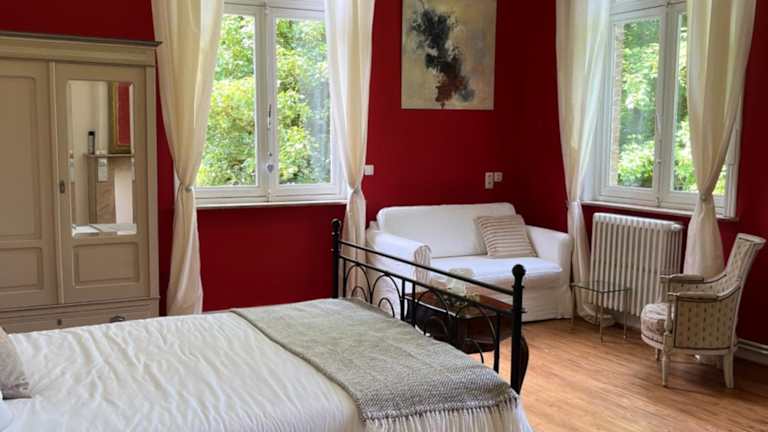 B&B Le Manoir de la Douve bietet kostenloses WLAN sowie einen Garten mit Terrasse und Blick auf den Garten. Die Unterkunft lädt zur Nutzung von Freizeiteinrichtungen wie Billard ein.