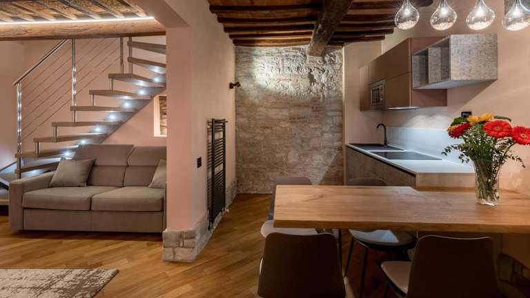 B&B Luxury Apartment Suite Gubbio 2 camere e divano letto bietet Übernachtungsmöglichkeiten in Form einer modernen Ferienwohnung mit einer Bar. Die Unterkunft verfügt über kostenloses WLAN und ist klimatisiert.