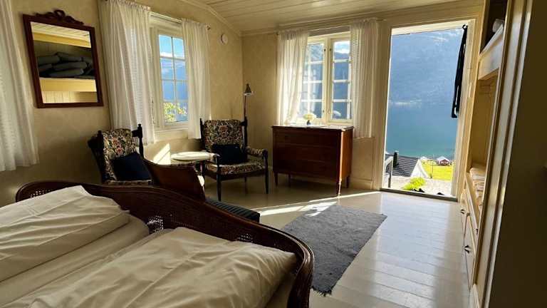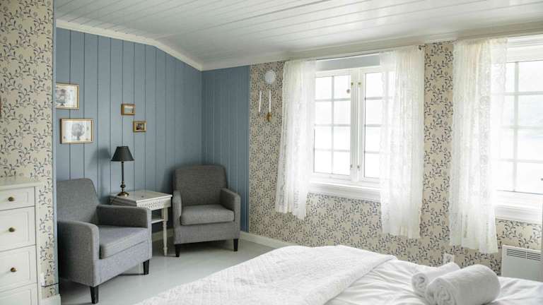 Der Gasthof Nes Gard ist ein historischer Bauernhof aus dem Jahr 1850 und bietet charmante Zimmer in vier verschiedenen Gebäuden auf dem Hof. Jedes Zimmer ist individuell gestaltet und verfügt über ein eigenes Bad. Einige Zimmer bieten zudem einen atemberaubenden Blick auf den Fjord sowie einen eigenen Balkon oder eine Terrasse. Die Superior Zimmer sind größer als die Standard Doppelzimmer und verfügen über eine eigene Terrasse oder einen Balkon. Das Dekor der Zimmer ist charmant und schafft eine gemütliche Atmosphäre für einen erholsamen Aufenthalt.