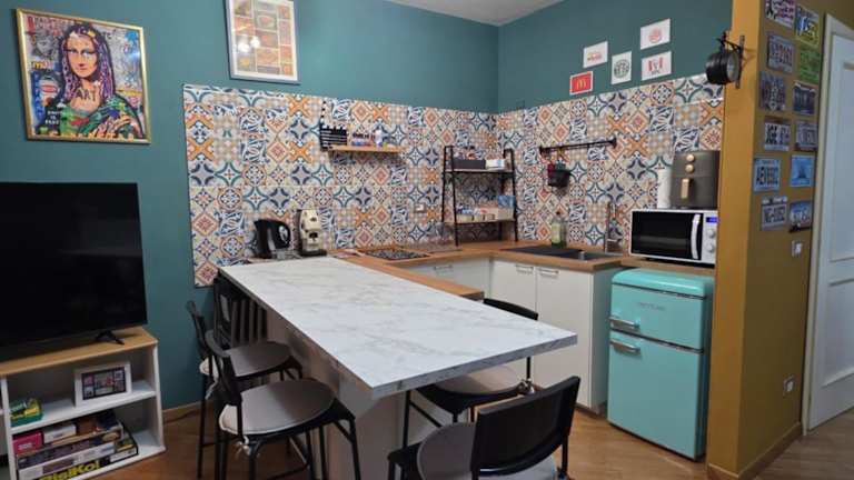 Die Ferienwohnung umfasst ein Schlafzimmer, ein Wohnzimmer sowie eine voll ausgestattete Küche mit Kühlschrank und Kaffeemaschine. Zudem stehen den Gästen ein Badezimmer mit Bidet und Dusche sowie Handtücher und Bettwäsche zur Verfügung.
