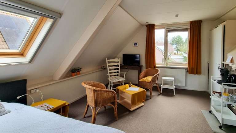 Im B&B overnachting de Margriet können Sie Fahrräder ausleihen und die Umgebung erkunden. Es gibt auch einen schönen Garten, eine Gemeinschaftslounge und eine Terrasse, auf denen Sie sich entspannen und die Natur genießen können.