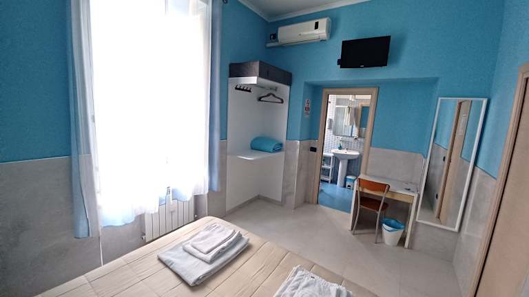 Das B&B Quattro Palazzi Napoli Centro verfügt über drei Zimmer, die jeweils ein einzigartiges Thema mit Sonnen-, Erd- und Meereselementen aufgreifen. Die Zimmer sind schallisoliert und verfügen über eine Klimaanlage, ein eigenes Badezimmer und einen LCD-Sat-TV mit DVD-Player. Von Ihrem Zimmer aus haben Sie einen herrlichen Blick auf die zentrale Einkaufsstraße Corso Umberto I.