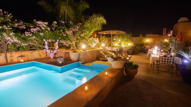 Im Herzen von Marrakesch erwartet Sie das Riad Hizad mit einer charmanten Unterkunft, nur wenige Gehminuten von den wichtigsten Sehenswürdigkeiten der Stadt entfernt. Das Riad bietet stilvolle Suiten im marokkanischen Stil, einen erfrischenden Pool und eine Dachterrasse mit Blick auf die Medina. Genießen Sie jeden Morgen ein traditionelles marokkanisches Frühstück und probieren Sie lokale Gerichte im hauseigenen Restaurant. Entspannen Sie in der Gemeinschaftslounge oder im authentischen Berber-Zelt und nutzen Sie das kostenlose WLAN. Das freundliche Personal steht Ihnen gerne bei der Organisation von Touren und Transfers zur Verfügung.