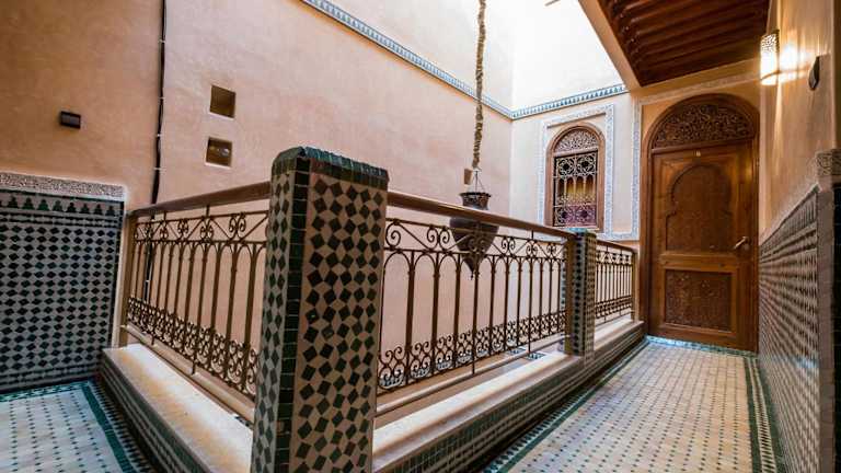 Das Riad Saad befindet sich in der Medina von Marrakesch und ist nur 2 Gehminuten vom Platz Djemaa el Fna entfernt. Diese zentrale Lage ermöglicht es Ihnen, die pulsierende Atmosphäre der Stadt bequem zu Fuß zu erkunden. In der Nähe des Riads befinden sich auch gebührenpflichtige öffentliche Parkplätze. Der Flughafen Marrakesch-Menara ist mit dem Auto in 20 Minuten zu erreichen.