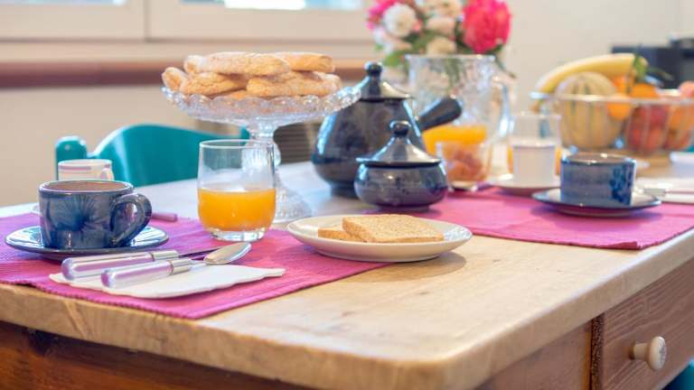 Genießen Sie jeden Morgen ein köstliches italienisches Frühstück im B&B Salighes, um gestärkt in den Tag zu starten. Die Gemeinschaftsküche bietet Ihnen auch die Möglichkeit, Ihre eigenen Mahlzeiten zuzubereiten.