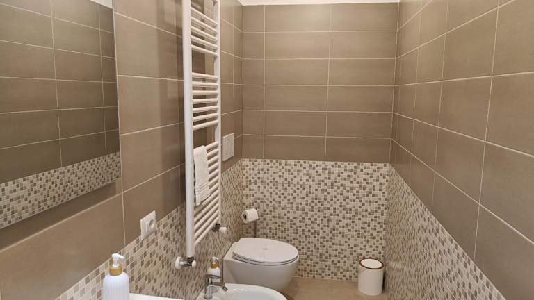 Die Zimmer in der Unterkunft B&B Tregì sind mit einem voll ausgestatteten eigenen Badezimmer ausgestattet, das eine Dusche und Bademäntel umfasst.