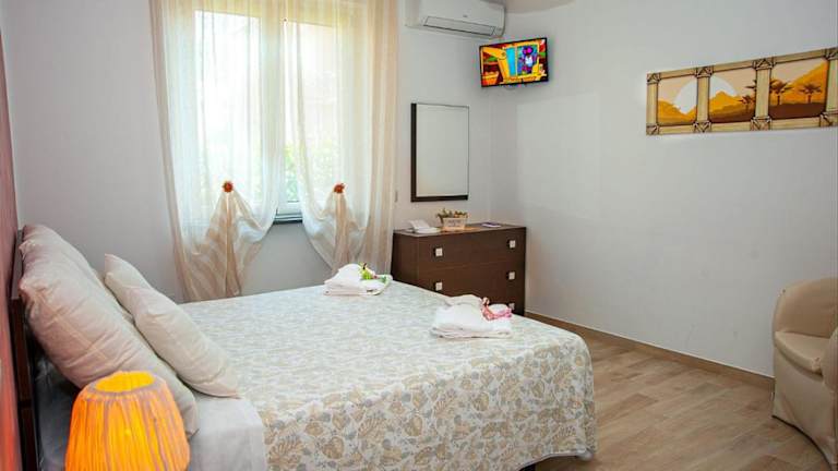 Die Unterkunft B&B Villa Rosa new liegt in SantʼAntonio Abate in der Region Kampanien. Der Vesuv befindet sich in einer Entfernung von 22 km, während Herculaneum 23 km und Villa Rufolo 27 km entfernt sind. Der nächste Flughafen, Neapel, ist 37 km von der Unterkunft entfernt.