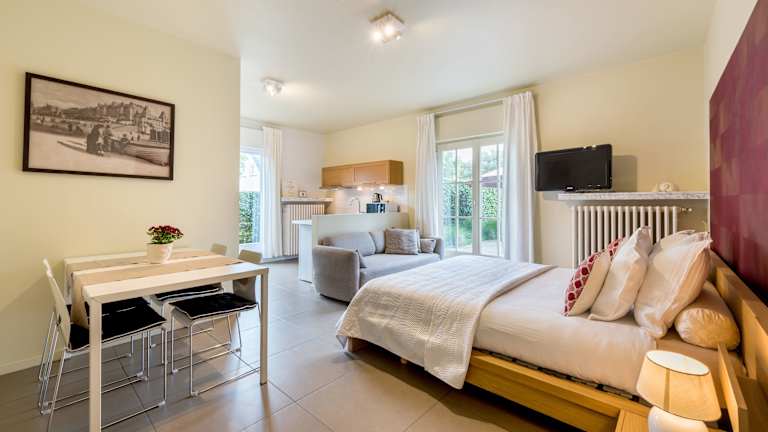 Die Unterkünfte sind hell gestaltet und verfügen über einen Flachbild-TV, ein Sofa sowie einen Essbereich. Die Studios beinhalten zusätzlich einen Küchenbereich mit Kühlschrank, Mikrowelle und notwendigen Küchenutensilien. Alle Bereiche bieten kostenfreies WLAN. Tägliche Reinigungsservices sind gegen Gebühr verfügbar.