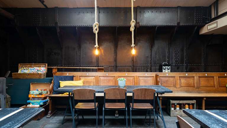 Die Unterkunft bietet Schiffskabinen in einem charakteristischen ehemaligen Freizelt. Jede Kabine ist einzigartig gestaltet und bietet einen gemütlichen und authentischen Aufenthalt. Kostenloses WLAN ist in allen Bereichen verfügbar. Das B&B verfügt außerdem über eine Lounge mit einer Bar und einer Terrasse am Wasser, wo Sie entspannen und die Atmosphäre genießen können.