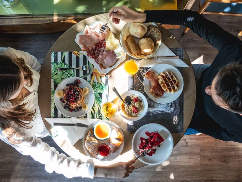 Ein reichhaltiges Frühstücksbuffet ist ein perfekter Start in den Tag. Genießen Sie unsere variierendes Gourmet Menu mit salzigen und süßen Speisen von 8.00 bis 9.30 Uhr, im Zimmerpreis inbegriffen. Heiße Getränke Milch, Säfte Jogurt Frisches Gebäck und Kuchen Brot, Müesli und Cereals Wurst und Käseplatten Eier und Bacon Frisches Obst und Gemüse Butter, Marmelade, Honig und Nutella