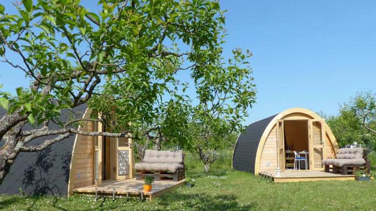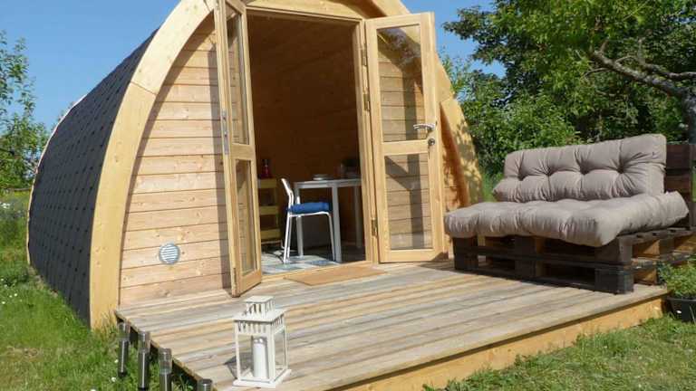 B2B Campingpods Volkach bietet Übernachtungsmöglichkeiten in einer naturnahen Umgebung mit Zugang zu einem Garten und einer Terrasse, die den Gästen die Möglichkeit bieten, die Umgebung zu genießen.