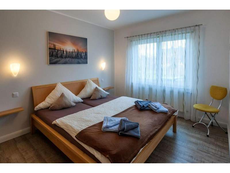 Die Ferienwohnung besitzt ein Schlafzimmer sowie ein Wohnzimmer mit einem TV, der Satellitenkanäle empfängt. Die Küche ist vollständig ausgestattet und beinhaltet einen Kühlschrank und einen Ofen. Ein Badezimmer ist ebenfalls vorhanden.
