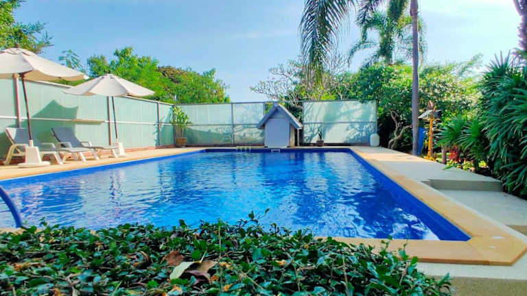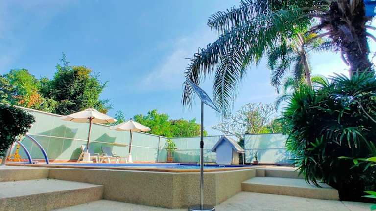Baan Nokkamin Seaside in Hua Hin - บ้านนกขมิ้นซีไซด์ หัวหิน bietet eine Vielzahl von Annehmlichkeiten, darunter kostenfreies WLAN, eine Klimaanlage, einen Außenpool und einen Garten. Die Unterkunft garantiert Nichtraucherzonen in allen öffentlichen und privaten Bereichen und legt Wert auf einen ruhigen Aufenthalt, indem Feierlichkeiten wie Junggesellenabschiede nicht gestattet sind. Die Check-in-Zeiten sind von 14:00 bis 22:00 Uhr, während der Check-out von 00:00 bis 12:00 Uhr erfolgt.