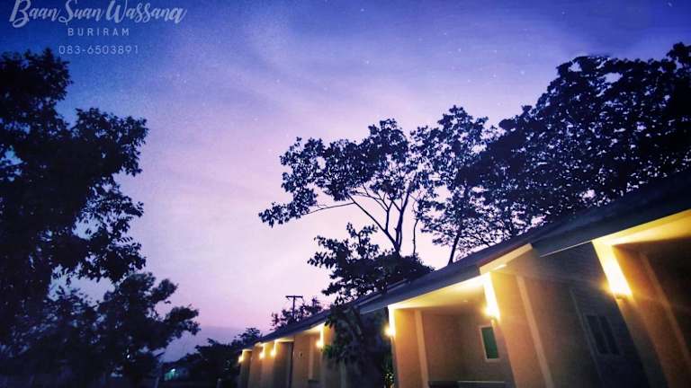 Das Baan Suan Wassana in Buri Ram ist eine ideale Unterkunft für alle, die die Rennstrecke Chang International Circuit oder die Chang Arena besuchen möchten. Das Resort bietet komfortable Zimmer mit kostenfreiem WLAN und kostenfreien Privatparkplätzen. Genießen Sie die ruhige Atmosphäre und entspannen Sie auf der Terrasse.