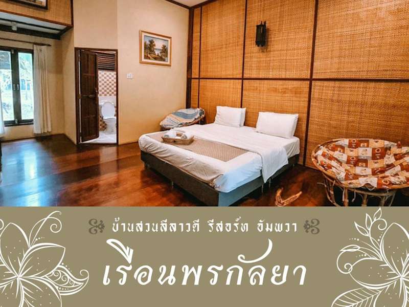 BaanSuanLeelawadee Resort Amphawa bietet Übernachtungsmöglichkeiten in einem Resort mit einem Garten, kostenloser privater Parkmöglichkeit und einer Terrasse. Die Unterkunft stellt kostenfreies WLAN sowie eine Gemeinschaftsküche zur Verfügung und eignet sich besonders für Familienaufenthalte.