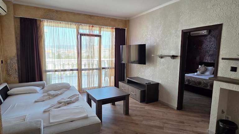Das Babylon Hotel befindet sich in Sunny Beach, einem beliebten Ferienort am Schwarzen Meer. Die malerische Lage des Hotels ermöglicht es Ihnen, das Meer in nur 120 Metern und das Zentrum des Ferienortes in 500 Metern zu erreichen. Die nächste Bushaltestelle ist nur 20 Meter entfernt, so dass Sie das Hotel bequem mit öffentlichen Verkehrsmitteln erreichen können.