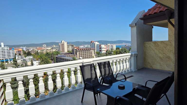 Das Babylon Hotel in Sunny Beach ist ein elegantes und hochwertiges Hotel, das durch seine malerische Lage und seine modernen luxuriösen Zimmer besticht. Genießen Sie die Nähe zum Meer und zum Zentrum des Ferienortes sowie die bequeme Anbindung an den öffentlichen Nahverkehr. Entspannen Sie am Pool oder in der 24-Stunden-Cocktail-Bar und lassen Sie sich im Hauptrestaurant mit köstlichen Gerichten und einer großen Auswahl an Weinen verwöhnen. Die Lobbybar bietet einen schönen Blick auf den Pool und ist der perfekte Ort, um sich bei einem Drink zu entspannen.